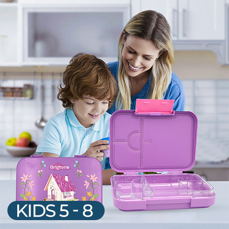 Send your child to school with a well-organized lunch in this sturdy blue lunch box. Features several sections to separate different food items and prevent mixing.